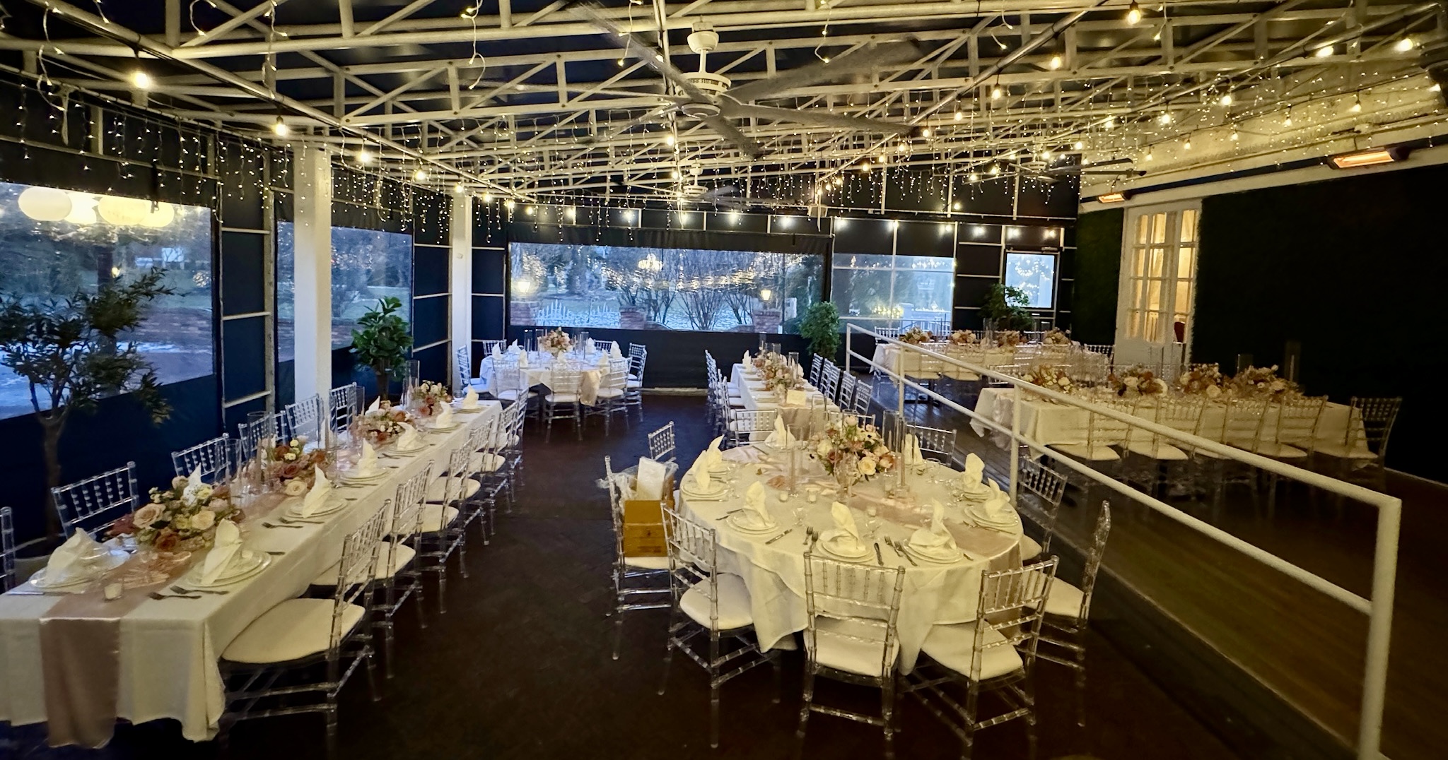 Our historic mansion boasts nine uniquely styled dining areas and three award-winning patios, ideal for gatherings of 10 to 120 guests. For larger celebrations, our separate banquet hall accommodates 100 to 300 guests for sit-down dinners and up to 400 for cocktail-style events.